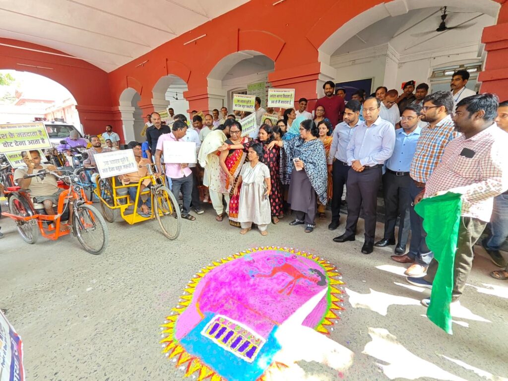 दिव्यांगजनों ने इस रैली में बैटरी चालित ट्राइसाइकिल और सामान्य ट्राइसाइकिल के माध्यम से उत्साहपूर्वक भाग लिया। उन्होंने “मतदान हमारा अधिकार है”, “सारे काम छोड़ दो, सबसे पहले वोट दो” और “हर वोट की है अहमियत” जैसे प्रेरक नारों के माध्यम से जनता को लोकतंत्र के इस महापर्व में भाग लेने का संदेश दिया।