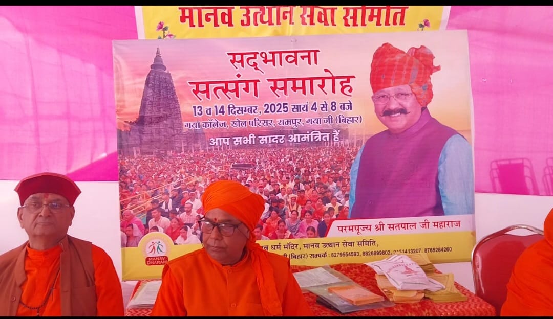 गयाजी। मानव उत्थान सेवा समिति द्वारा 13 एवं 14 दिसम्बर 2025 को गया कॉलेज खेल परिसर, रामपुर में सायंकाल 4 बजे से 8 बजे तक द्विदिवसीय सद्भावना सत्संग समारोह आयोजित किया जा रहा है। कार्यक्रम को सफल बनाने के लिए समिति द्वारा व्यापक तैयारी की गई है।