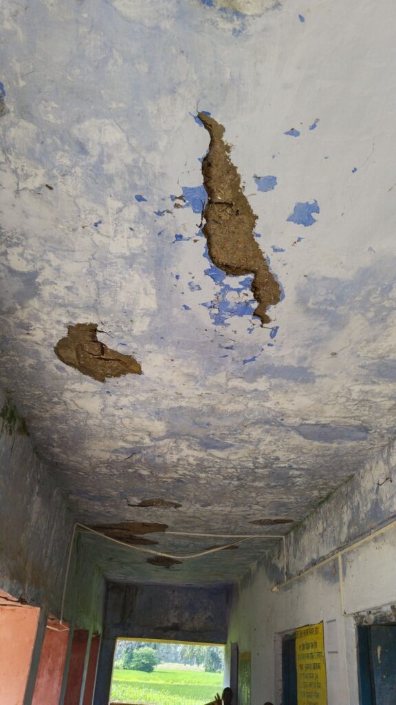 बारिश के दिनों में कक्षाओं की स्थिति और भी भयावह हो जाती है। छत से पानी टपकने के कारण बच्चे अक्सर भीगकर पढ़ाई करते हैं, वहीं दीवारों में दरारें और छत का झड़ता प्लास्टर किसी बड़े हादसे की आहट देता है। ग्रामीण बताते हैं कि बच्चे रोज़ भय के साये में स्कूल आते हैं, लेकिन मजबूरी है कि गांव में यही एकमात्र विद्यालय है।